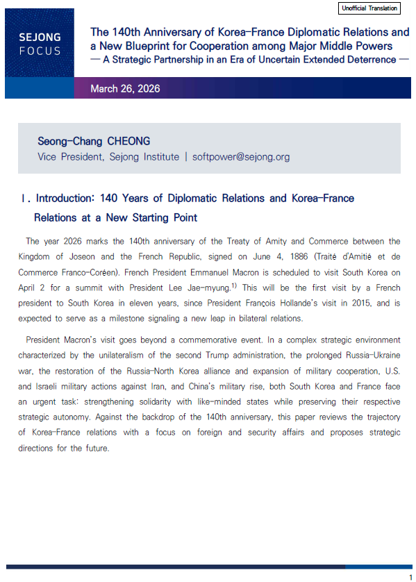 [Sejong Focus] The 140th Anniversary of Korea–France Diplomatic Relations and a New Blueprint for Cooperation among Major Middle Powers