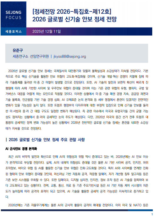 파일명 2026 글로벌 신기술 안보 정세 전망 저자명 유준구 선임연구위원