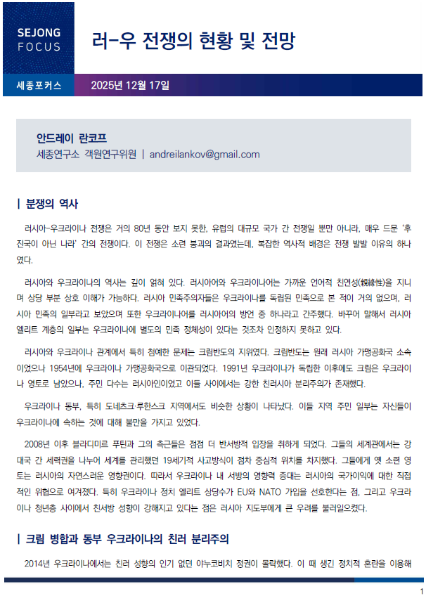 안드레이 란코프세종연구소 객원연구위원 | andreilankov@gmail.com