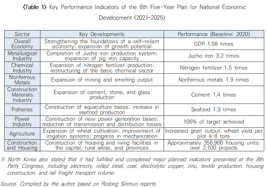 North Korea evaluated its economic performance during the 8th Party Congress period (2021–2025) as a “great era of transformation in which socialist construction has firmly entered a stage of comprehensive development.” While this overall assessment does not differ significantly from that presented at the 9th Party Congress, the current SPA session provided more detailed explanations by presenting specific figures and sectoral achievements, particularly in heavy industry and the strengthening of a self-reliant economic base. At the same time, by highlighting achievements in agriculture, construction, fisheries, and regional development, the regime extends the narrative of economic performance to areas more directly experienced by the population in their daily lives.