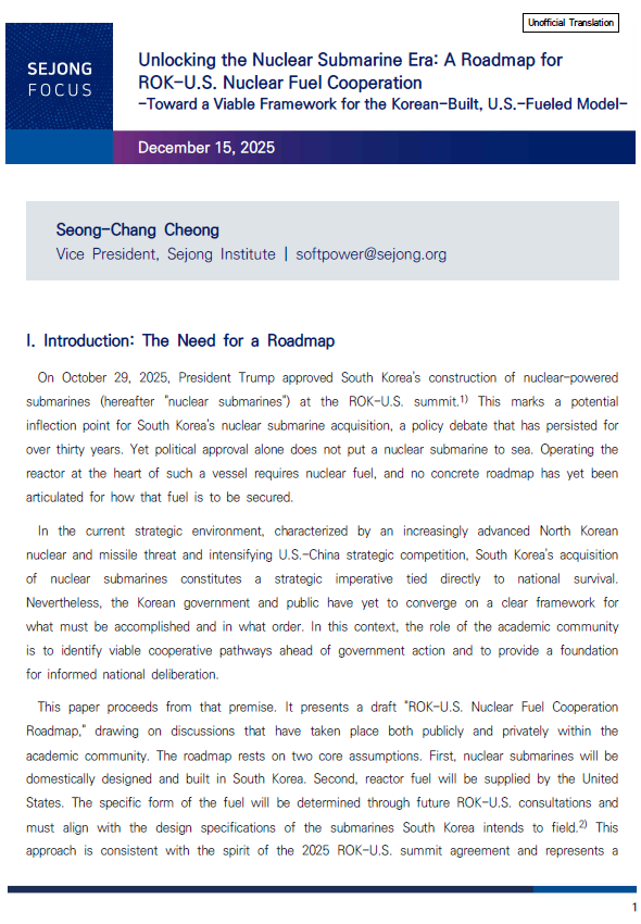 ※ The contents published on 'Sejong Focus' are personal opinions of the author and do not represent the official views of Sejong Institue