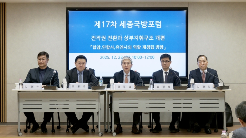 세종연구소는 12월 23일(화) 10:00~12:00, 세종연구소에서 "전작권 전환과 상부지휘구조 개편 (부제: 합참, 연합사, 유엔사의 역할 재정립 방향)"이라는 주제로 제17차 세종국방포럼을 개최하였다.