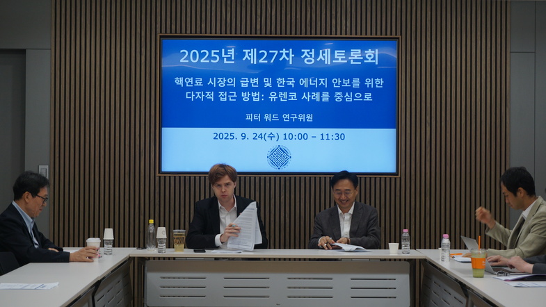 9월 24일(수) 개최된 세종연구소 2025년 제27차 정세토론회에서 피터 워드 연구위원이 "핵연료 시장의 급변 및 한국 에너지 안보를 위한 다자적 접근 방법: 유렌코 사례를 중심으로"를 주제로 발표하였다.