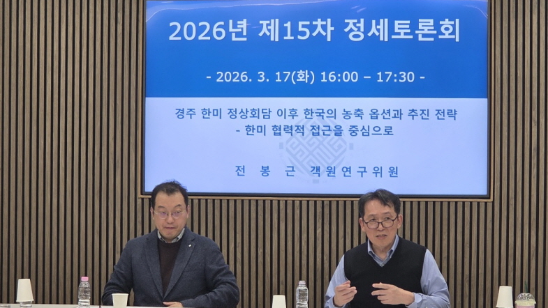 3월 17일(화) 개최된 세종연구소 2026년 제15차 정세토론회에서 전봉근 객원연구위원이 "트럼프 행정부의 원자력 동향과 한미 원자력 협력 확대 전략"을 주제로 발표하였다.