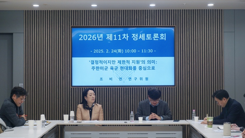 2월 24일(화) 개최된 세종연구소 2026년 제11차 정세토론회에서 조비연 연구위원이 "'결정적이지만 제한적 지원'의 의미: 주한미군 육군 현대화를 중심으로"를 주제로 발표하였다.