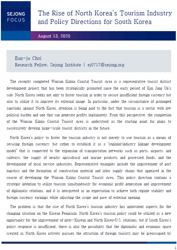 [Sejong Focus] The Rise of North Korea’s Tourism Industry and Policy Directions for South Korea