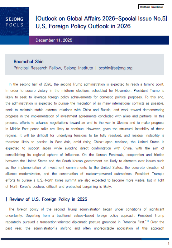 [Outlook on Global Affairs 2026-Special Issue No.5] U.S. Foreign Policy Outlook in 2026