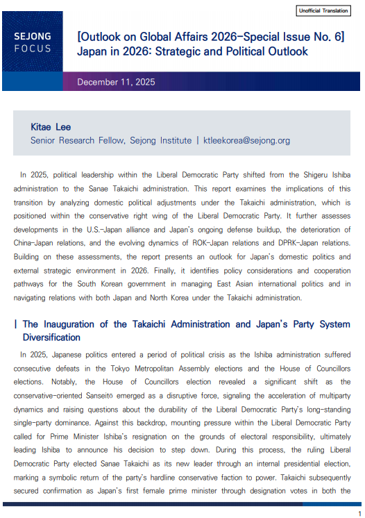 [Outlook on Global Affairs 2026-Special Issue No. 6] Japan in 2026: Strategic and Political Outlook
