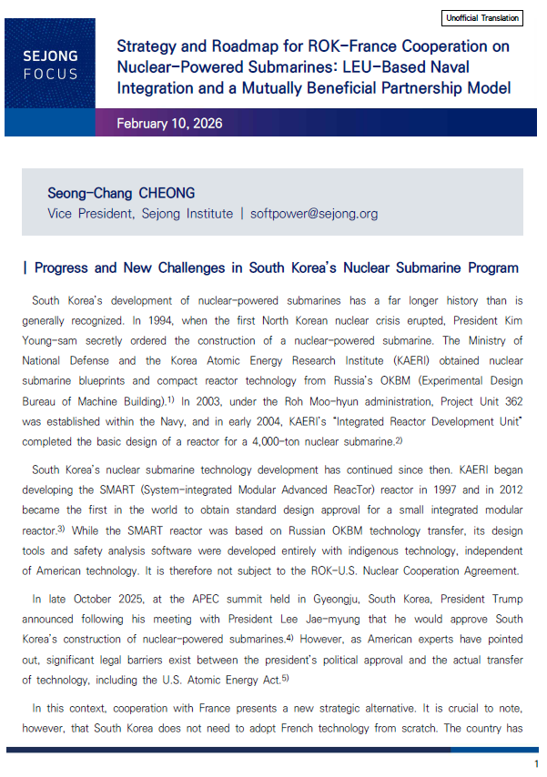 [Sejong Focus] Strategy and Roadmap for ROK-France Cooperation on Nuclear-Powered Submarines: LEU-Based Naval Integration and a Mutually Beneficial Partnership Model