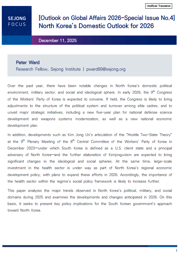 [Outlook on Global Affairs 2026-Special Issue No.4] North Korea’s Domestic Outlook for 2026
