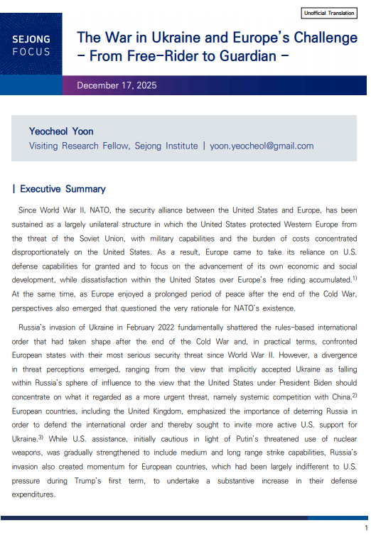 [Sejong Focus] The War in Ukraine and Europe’s Challenge - From Free-Rider to Guardian -
