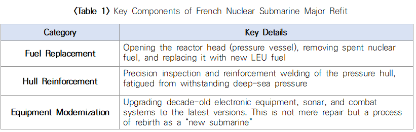French nuclear submarines are thus “hospitalized” (in maintenance) for approximately 1.5 to 2 years every decade to replace their “heart” (fuel) and renovate their “body” (hull). South Korea must therefore factor this cycle into its overall fleet planning.