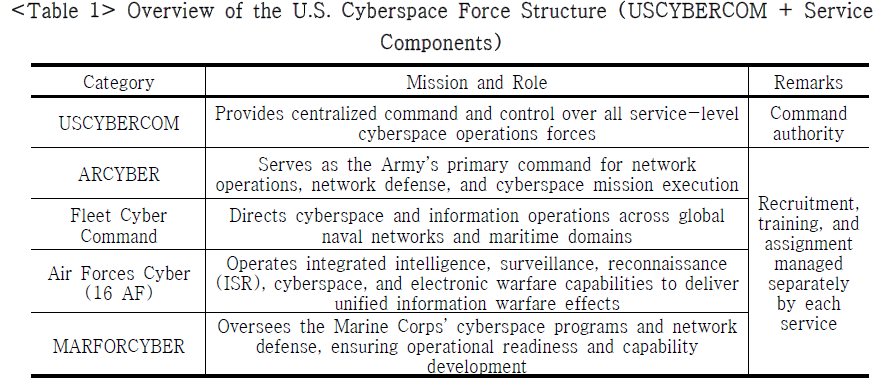 Moving forward, the ROK military should institutionalize a rotational education and training platform connecting the civilian and military sectors, establish an integrated information system for joint training and cognitive warfare response, and build genuine trust within the framework of international cooperation networks. Above all, only by developing a realistic roadmap that accounts for budgetary and political constraints, and by linking it to broader defense reform initiatives, can South Korea fully achieve Cyberspace Force Readiness.