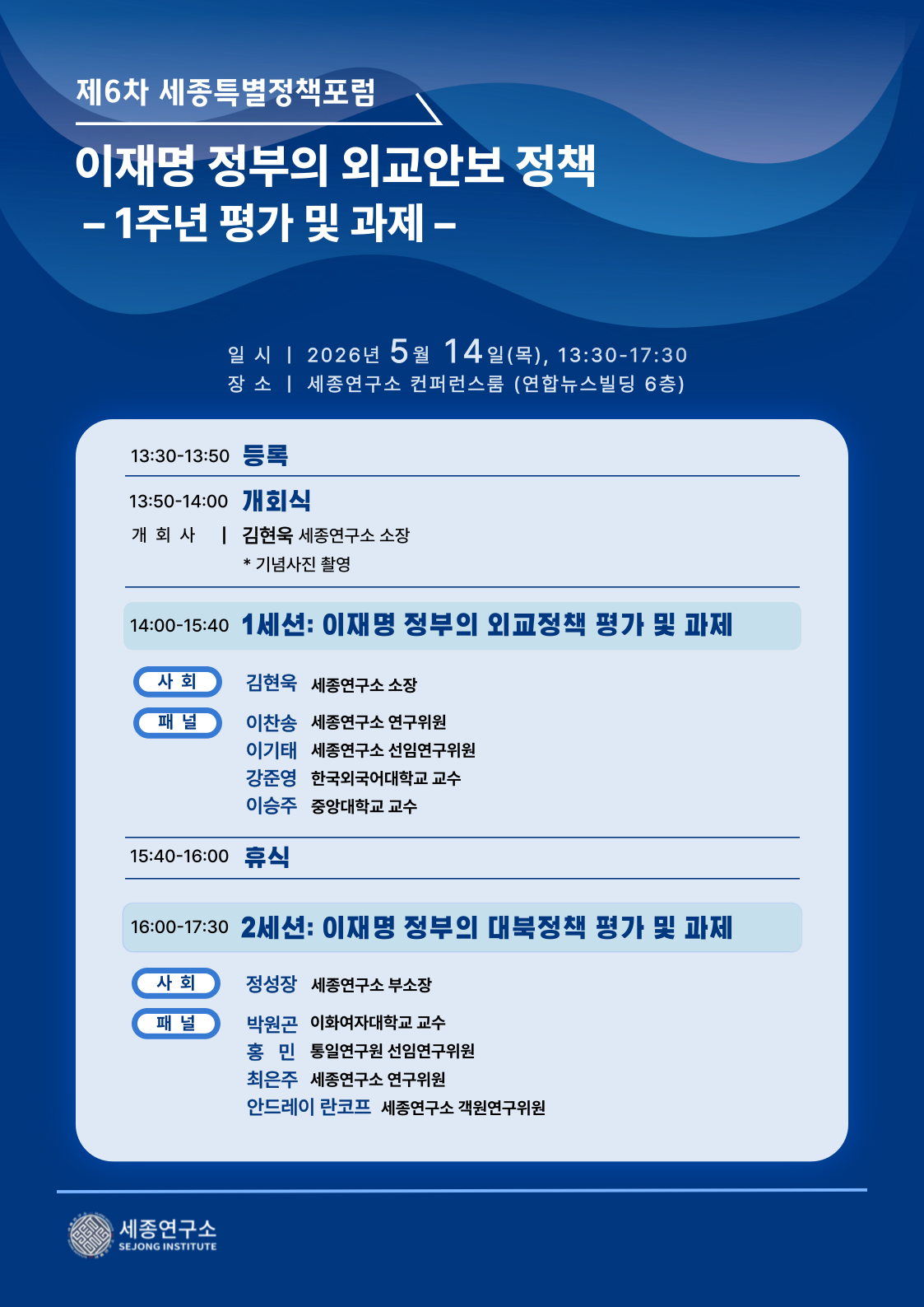 - 장소: 세종연구소 컨퍼런스룸 (연합뉴스빌딩 6층)