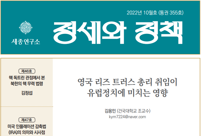 리즈 트러스 총리 정권이 유럽에 미치는 영향과 한국에 주는 정책적 시사점
