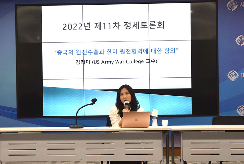 6월28일(화) 개최된 세종연구소 2022년 제11차 정세토론회에서 US Army War College 김라미 교수가 "중국의 원전수출과 한미 원전협력에 대한 함의"를 주제로 발표하였다. 본 정세토론회는 이대우 안보전략연구실장의 사회로 진행되었다.