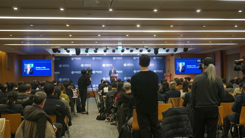 재단법인 세종연구소(이사장 이용준)는 1월 26일(월) 오후 1시 30분 연합뉴스빌딩 17층 연우홀에서 150명 이상의 청중이 참석한 가운데 엘브릿지 콜비 미국 전쟁부 정책차관 초청 연설을 개최하였다. 이날 연설에서는 최근 발간된 미국의 국방전략서에 기반하여, 미국의 국방전략, 우선순위, 그리고 동맹과의 협력 방향에 대한 설명이 이어졌다. 이후 김현욱 세종연구소장과 엘브릿지 콜비 정책차관 간의 비보도 대담이 진행되었다.