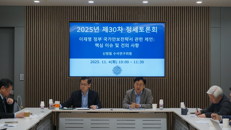 11월 4일(화) 개최된 세종연구소 2025년 제30차 정세토론회에서 신범철 수석연구위원이 "이재명정부 국가안보전략서 관련 제언: 핵심 이슈 및 건의 사항"을 주제로 발표하였다.