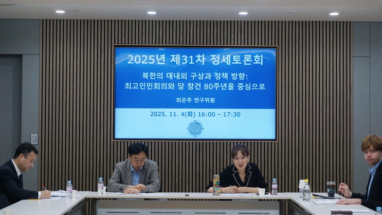 11월 4일(화) 개최된 세종연구소 2025년 제31차 정세토론회에서 최은주 연구위원이 "2025년 하반기 북한의 대내외 정책 구상 및 평가"를 주제로 발표하였다.