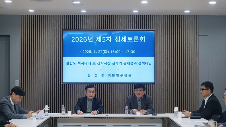 1월 27일(화) 개최된 세종연구소 2026년 제5차 정세토론회에서 전성훈 객원연구위원이 "한반도 핵시대에 美 전략자산 전개의 문제점과 정책대안"을 주제로 발표하였다.
