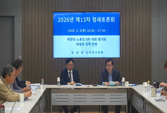 3월 5일(목) 개최된 세종연구소 2026년 제13차 정세토론회에서 정성장 부소장이 "북한 노동당 9차 당대회 평가와 대내외 정책 전망"을 주제로 발표하였다.