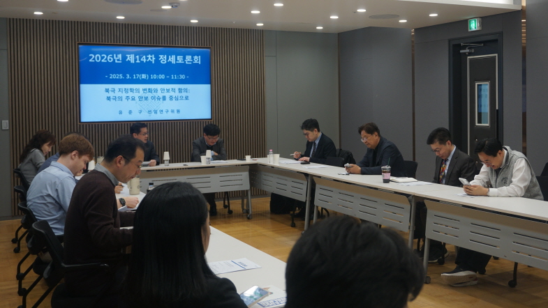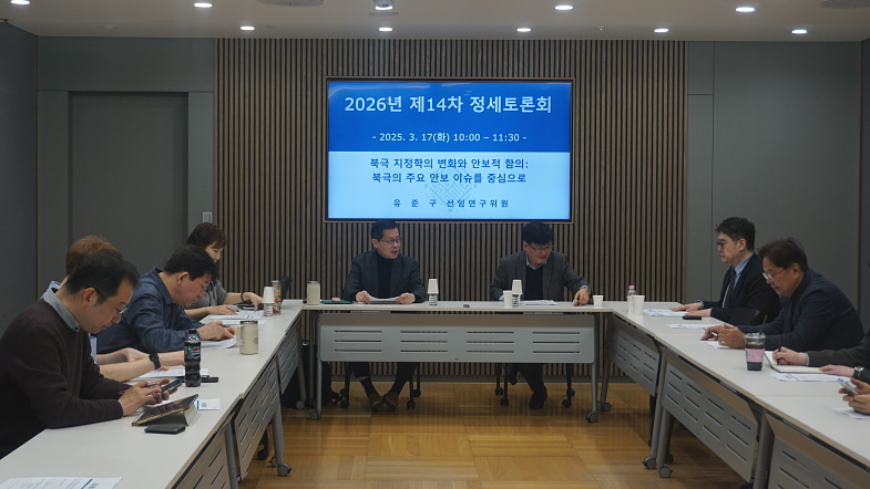 3월 17일(화) 개최된 세종연구소 2026년 제14차 정세토론회에서 유준구 선임연구위원이 "북극 지정학의 변화와 안보적 함의"를 주제로 발표하였다.