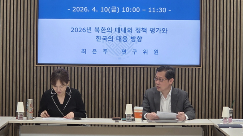 4월 10일(금) 개최된 세종연구소 2026년 제20차 정세토론회에서 최은주 연구위원이 "2026년 북한의 대내외 정책 평가와 한국의 대응 방향"을 주제로 발표하였다.