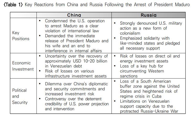Russia, while its economic investment in Venezuela falls short of China's in scale, has long regarded the country as a high-value asymmetric asset for counterbalancing the United States. Having cultivated deep ties with the Maduro regime in the energy and arms sectors by circumventing Western sanctions imposed on Russia, Moscow has responded with strong opposition to the recent developments. The fact that China and Russia jointly convened the UN Security Council immediately following Maduro's arrest to strongly condemn what they characterized as unlawful U.S. conduct suggests that the strategic alignment between the two powers in pursuit of a new international order is operating with considerable coherence on the Latin American stage as well, extending well beyond the management of individual state crises.