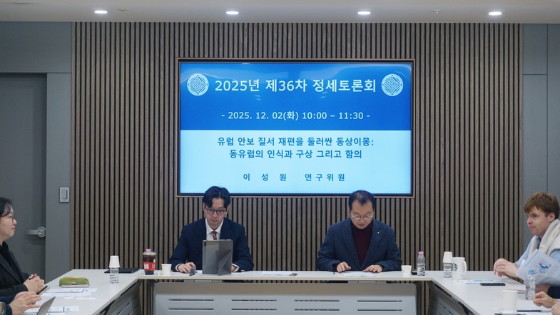 On December 2, Sungwon Lee, Research Fellow, delivered a presentation titled "Divergent Visions in the Reorganization of the European Security Order:Eastern Europe’s Perceptions, Plans, and Implications."