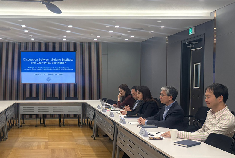 The Sejong Institute held a meeting on January 16 (Thursday) afternoon with experts from Grandview Institution, with the topic of “Challenges and Opportunities in Korea-China Relations: Trump’s Second Term, South Korea’s Political Landscape, and Security on the Korean Peninsula.” The discussion centered around the policies of the Trump administration and response strategies, the need for Korea-China-Japan cooperation, the North Korean nuclear issue, and stability on the Korean Peninsula.